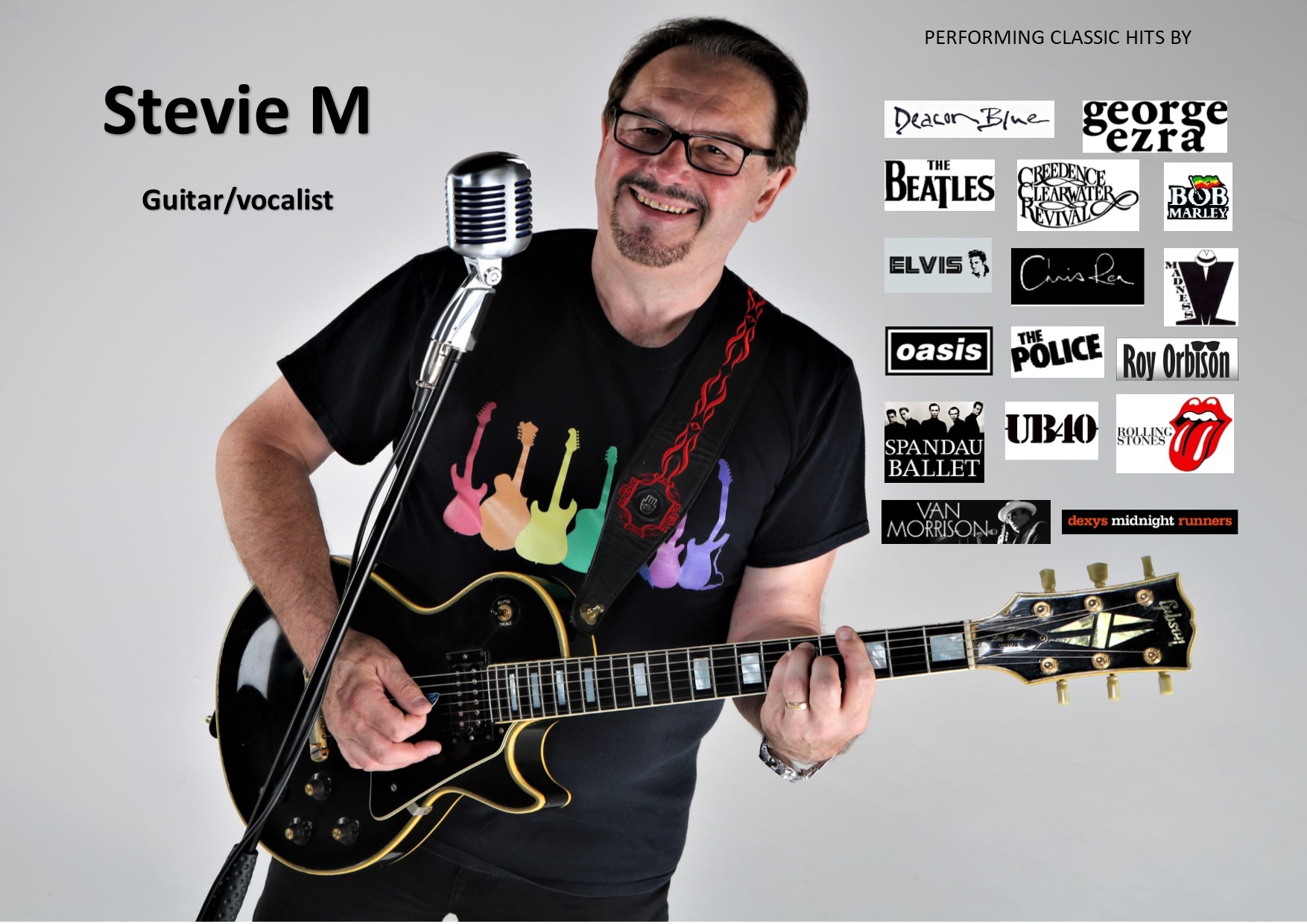 Stevie has many years experience as a musician and entertainer. His repertoire consists (mainly) of hits from the '80s by artists such as UB40, Police, Chris Rea, Madness, Spandau Ballet, Dexy’s Midnight Runners, Bob Marley, Bad Manners, etc. - however he also performs many songs from the '60s right up to present day hits.